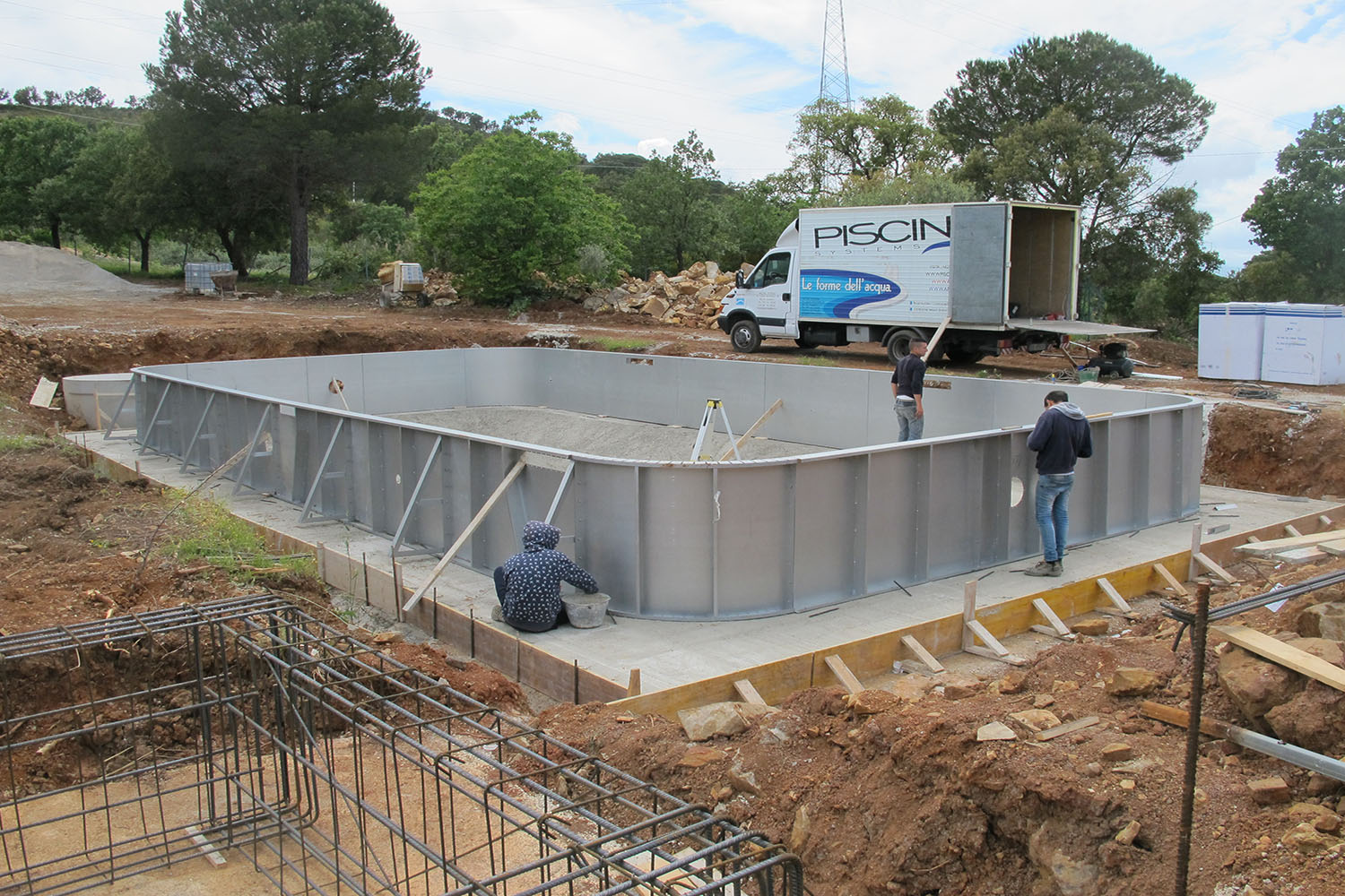 Piscina con struttura autoportante in acciaio al carbonio laminato a freddo spessore 2mm rivestito in continuo con un procedimento a caldo con una lega di alluminio, zinco e silicio per immersione a caldo in continuo.